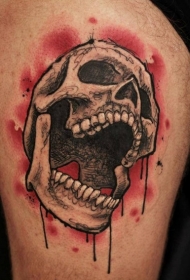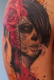 大臂水彩死亡女郎玫瑰泼墨纹身图案