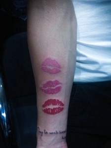 女子背部脊椎骨上一行红色的英文字纹身图片