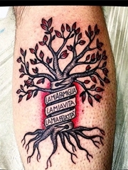 遮盖整个腿部的红色大鲤鱼纹身图案