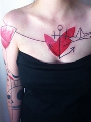 女性正背帅气的红火焰黑灰色龙纹身图片