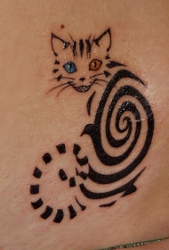 蓝色和红色眼睛的螺旋猫纹身图案