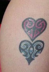 蓝色和红色心形图腾纹身图案