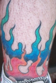 蓝色和红色的火焰纹身图案