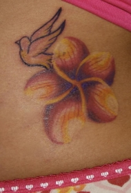 背部完美的彩色小鸟花卉世外桃源纹身图案