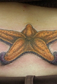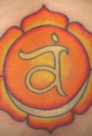 背部黄色的鲤鱼和花朵汉字纹身图案