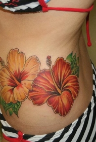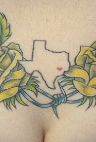 腰部漂亮的黄色玫瑰和荆棘纹身图案