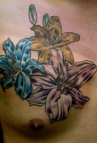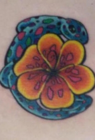 手臂写实黄色和蓝色蜥蜴纹身图案