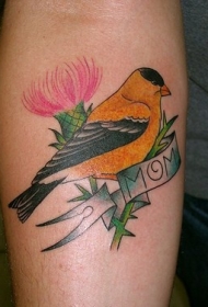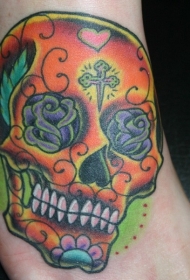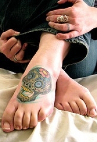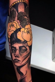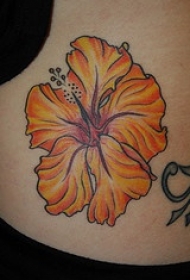 女性脚背彩色黄色玫瑰与露水纹身图片