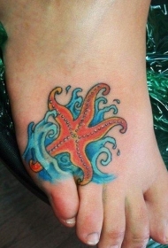脚背彩色漂亮的蝴蝶和星星纹身图片