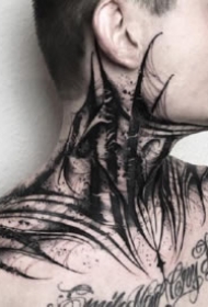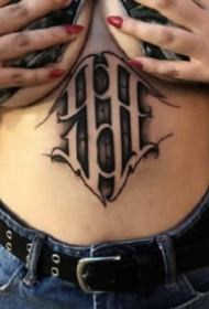 胸口花体字纹身 男性胸部的黑灰色花体字纹身图片