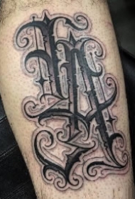 纹身花体字 9张暗黑色的漂亮花体字纹身作品图片