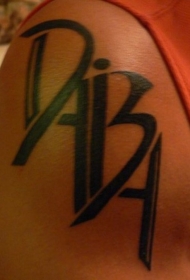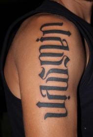 男生手臂上黑灰点刺抽象线条花体英文半袖纹身图片