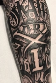 欧美小腿纹身 男生小腿上黑色的花体英文纹身图片