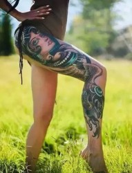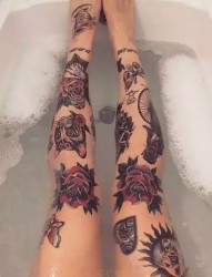 异形归来 花腿纹身 腿部纹身 外国手稿纹身