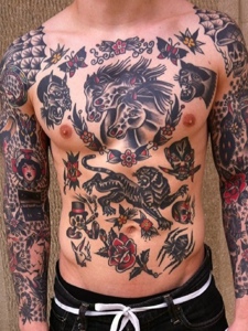 纹身花胸 超级帅的school动物大V花胸纹身图片
