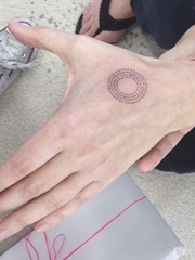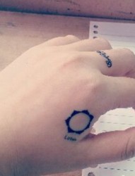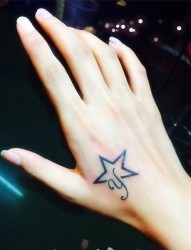 虎口花草纹身 手背上虎口位置的黑灰小花草纹身作品