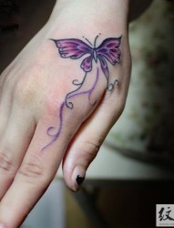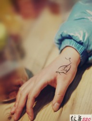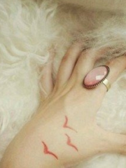女生虎口纹身图案 女生手背上黑色的乌鸦纹身图片
