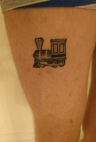 女生大腿上黑色点刺几何简单线条火车纹身图片