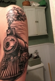 双大臂纹身 男生大臂上黑色的火车纹身图片