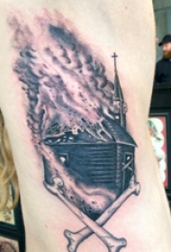纹身侧腰男 男生侧腰上火焰和建筑物纹身图片