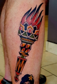 欧美小腿纹身 男生小腿上彩色的火炬纹身图片