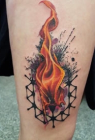 火的纹身图案 男生小腿上彩绘的火纹身图片