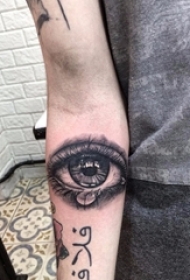 男生手臂上黑灰点刺简单线条创意人物刺青图案图片