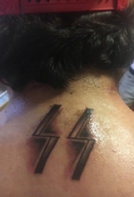 男生颈后黑灰点刺几何简单线条闪电刺青图案图片