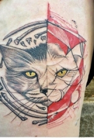女生大腿上彩绘简单抽象线条拼接小动物猫咪刺青图案图片