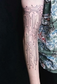男生手臂上黑色几何简单线条创意刺青图案图片