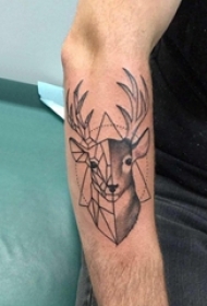 男生手臂上黑灰点刺几何简单线条拼接小动物鹿刺青图案图片