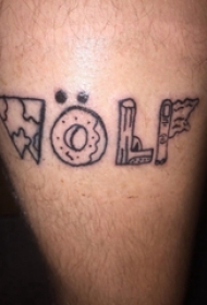 男生小腿上黑色几何元素简单线条创意英文单词刺青图案图片