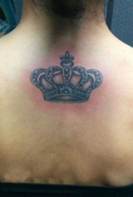女生背部黑灰素描点刺技巧创意文艺唯美皇冠刺青图案图片