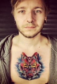 男生胸部彩绘渐变几何简单线条小动物狼刺青图案图片