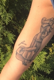女生小腿上黑灰素描点刺技巧创意女生肖像刺青图案图片