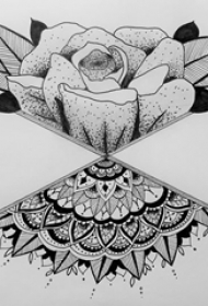 黑灰素描点刺技巧创意唯美玫瑰创意花纹扇子刺青手稿图片