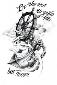 黑色素描创意海军风船锚花体英文刺青手稿图片