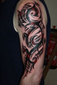 男生手臂上红黑素描创意经典图腾花臂刺青图案图片