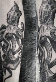 男生手臂上黑色点刺简单抽象线条小动物章鱼刺青图案图片