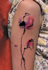 女生手臂上彩绘水墨唯美花朵刺青图案图片