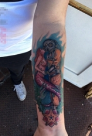 女生手臂上彩绘人物与美人鱼刺青图案图片