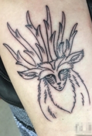 男生手臂上黑灰色鹿与星空刺青图案图片