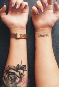 女生手臂上黑色线条文艺小清新花束刺青图案图片