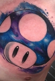 男生胸上彩绘唯美星空与可爱蘑菇刺青图案图片
