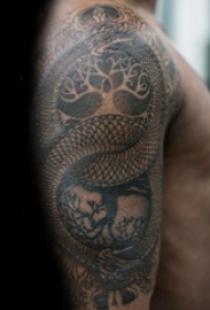 男生手臂上黑色素描创意个性霸气蛇刺青图案图片