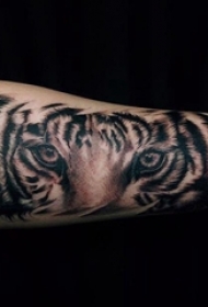 男生手臂上黑灰点刺技巧动物老虎刺青图案图片