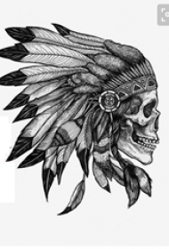 适合男生的黑灰色骷髅头与印第安头饰刺青手稿素材图片