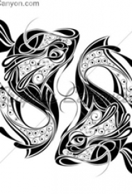 漂亮的黑色几何对称小动物刺青鱼刺青手稿素材图片