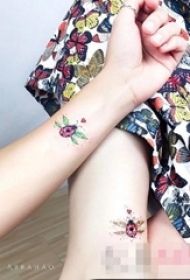 男生手臂上创意彩绘花臂与花卉蜜蜂刺青图案图片