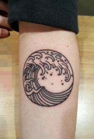 女生手臂上黑色简约几何线条海浪刺青图案图片
